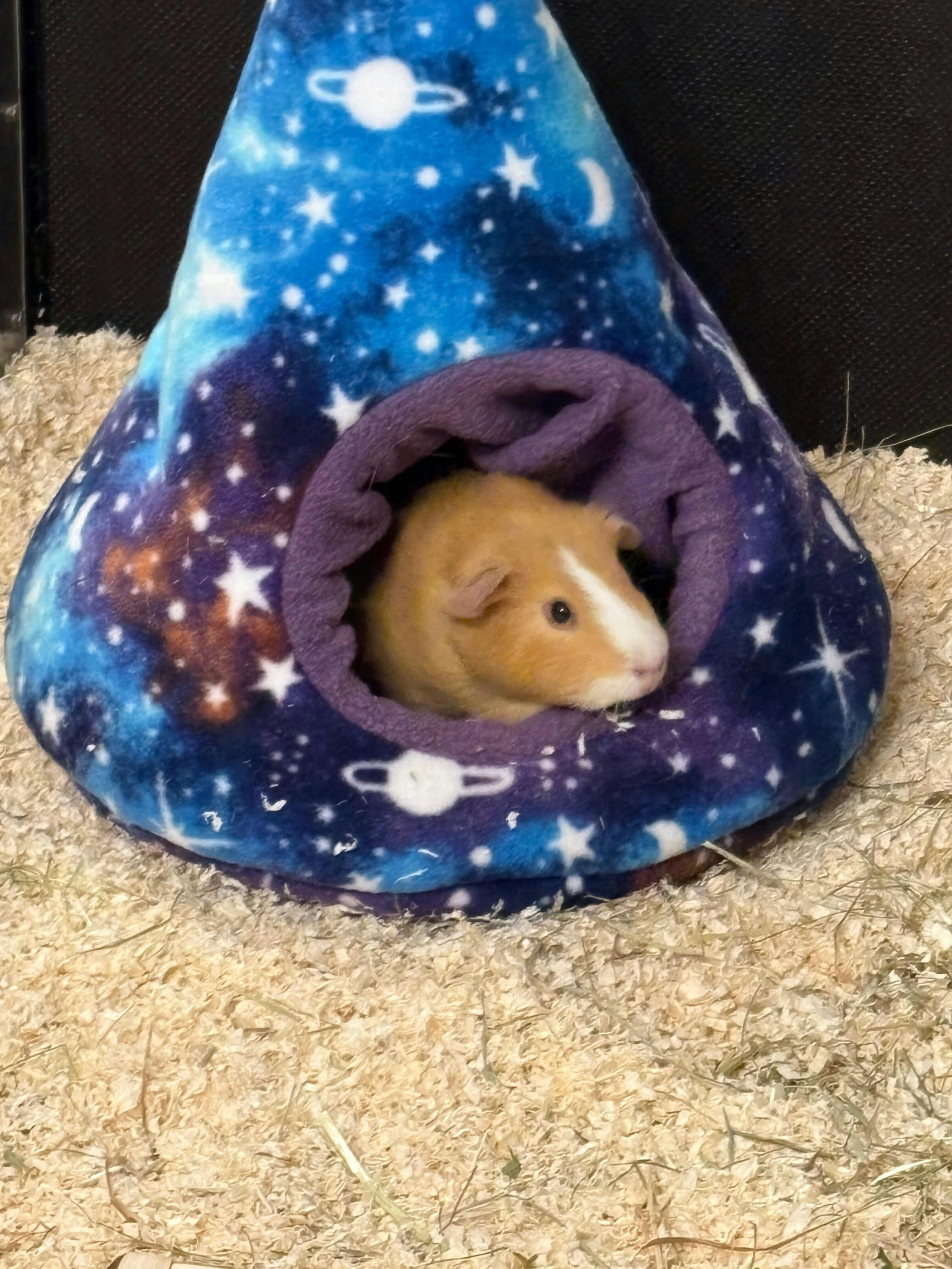 Unser liebevoll gefertigter Kuschelzipfel für Meerschweinchen ist der ideale Rückzugsort für deine kleinen Fellnasen! Mit einem Außenmaß von ca. 33 cm Durchmesser bietet er ausreichend Platz zum Einkuscheln, Verstecken und Dösen.